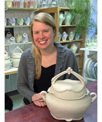 Martha Grover is a functional potter, living in Bethel, Maine, creating thrown and altered porcelain pieces. She attended Bennington College in Vermont, where she received her undergraduate degree in Architecture. After going to Syracuse University in New York as a fifth year student in Ceramics, she decided to pursue a graduate degree in clay. In 2007, Martha received her MFA in ceramics from the University of Massachusetts Dartmouth. She was awarded the Fogelberg Fellowship for a residency at the Northern Clay Center in Minneapolis, Minnesota, and the Sage Scholarship for a summer residency at the Archie Bray Foundation in Helena, Montana. Martha completed a year long residency at Red Lodge Clay Center in Red Lodge, Montana in August 2009. She received the Taunt Fellowship at the Archie Bray Foundation in 2010.